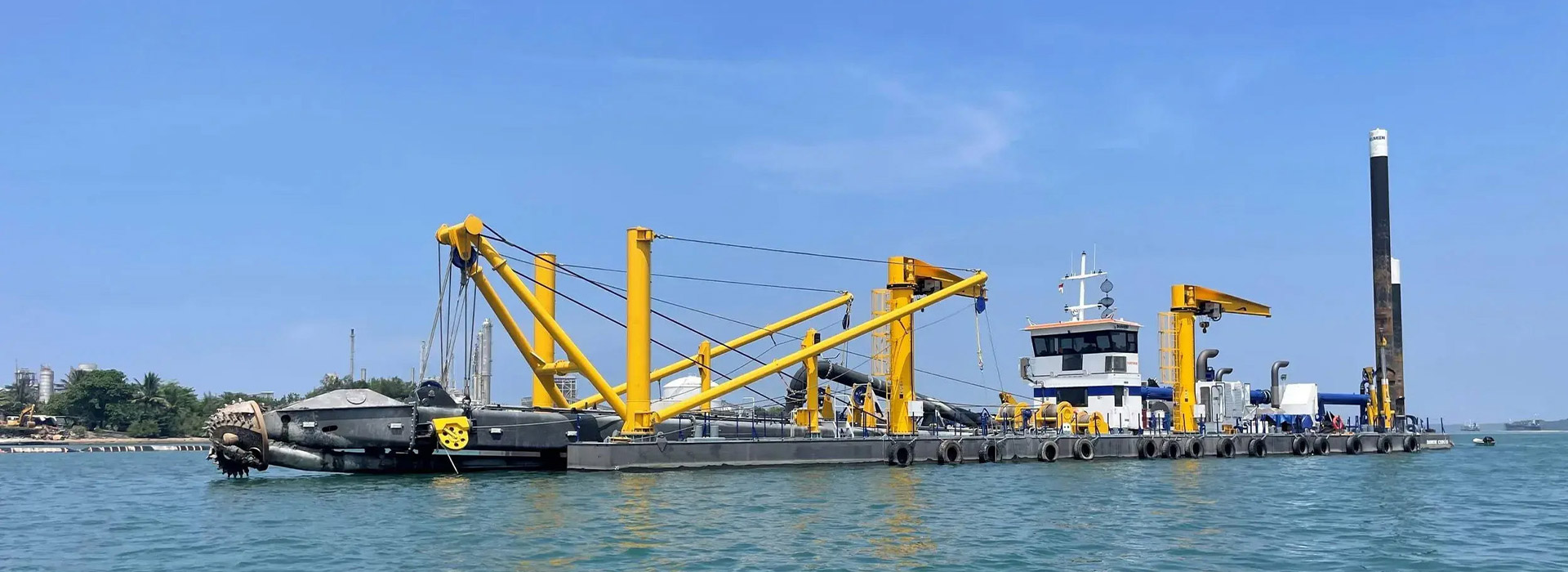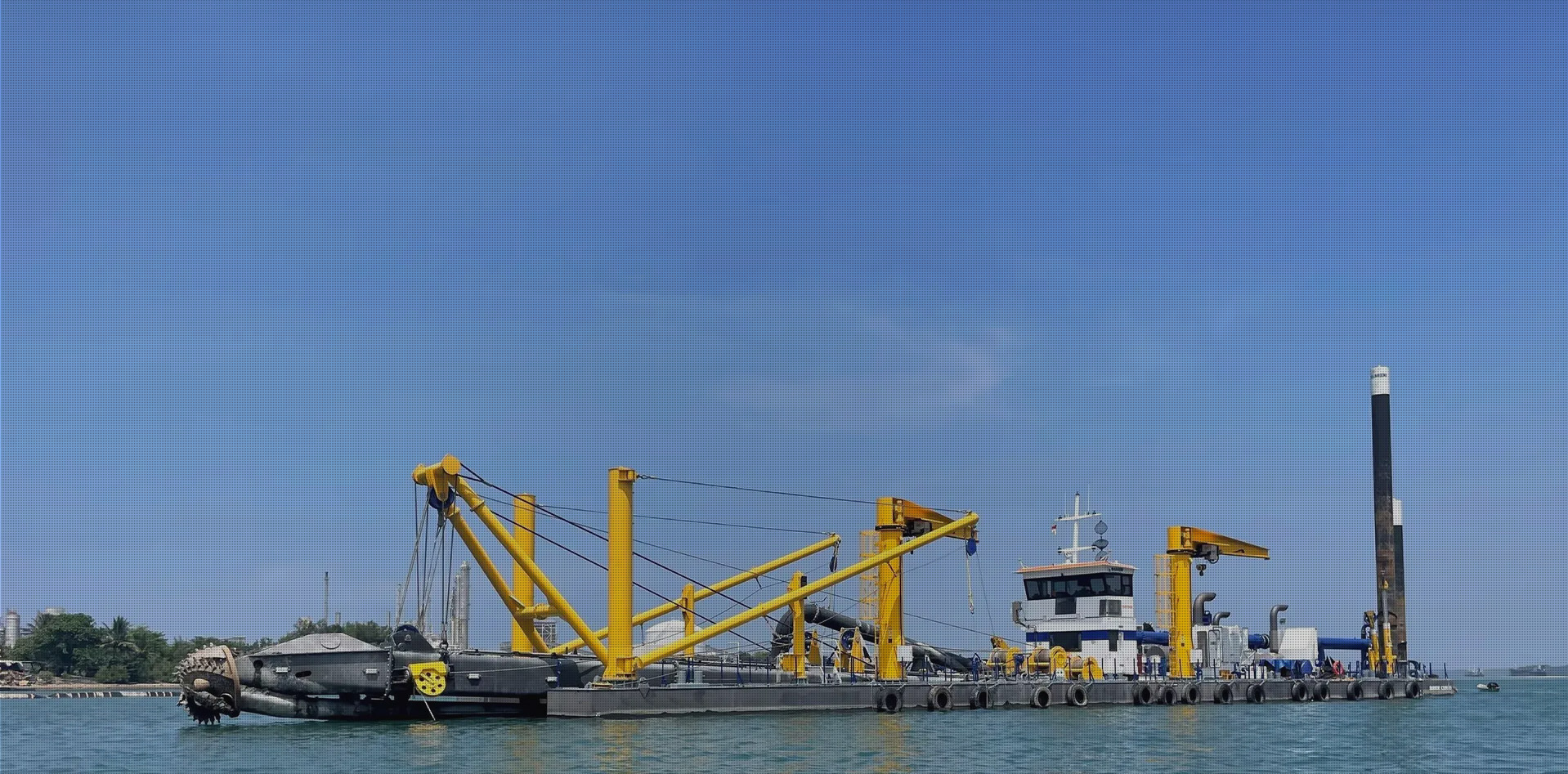 該挖泥船具有顯著的工效:日均工作時間可達20h,挖泥產品均為500方土/小時,耗油量約為100kg/h。注意事項